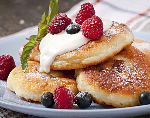 Отдельно подать сметану, варенье или свежие ягоды.